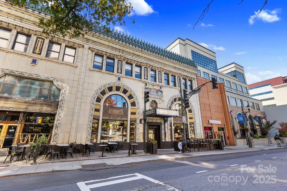 Perched high above the energy of downtown Asheville, this two-story penthouse in the iconic S&W building is a rare offering of history, artistry, and modern luxury. Set within a striking Art Deco building designed by famed architect Douglas Ellington, every detail whispers of timeless elegance. Soaring ceilings, exposed brick walls, and bold steel beams frame an open living space that feels both dramatic and inviting. With two spacious bedrooms and two-and-a-half baths, the residence offers refined comfort, while its architecture tells a story of Asheville’s vibrant past. A true showpiece, the penthouse extends outdoors with 500+/- square feet of private terrace—an expansive sanctuary in the sky. Here, evenings unfold under city lights and mornings begin with the quiet charm of mountain air. This is more than a residence. It is a statement—an invitation to own a piece of Asheville’s architectural legacy while living at the very center of its cultural heartbeat. The masterpiece is being offered completely turn-key including furnishings, the stocked kitchen and accessories.