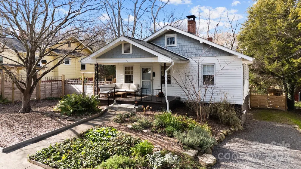 Tastefully Renovated West Asheville Bungalow. Open-concept floor plan features a true chef's kitchen with Bosh refrigerator and dishwasher, Wolf gas range, custom Space Theory cabinets, and concrete countertops. The living room is centered around a Morso wood stove which can heat the house. Additional flex space offers the potential for an office or second bathroom to create a primary suite. The back porch overlooks an expansive and level .27 acre yard with a custom fence, fire pit, and woodshed. A private oasis in the summer months. The covered front porch is a sweet spot to welcome the new day. The side yard features a fenced in garden with raised beds and espalier fruit trees. Additional features include hardwood floors throughout, basement with ample storage, encapsulated crawl space, and H2Easy whole house water filtration system. Roof and hot water heater replaced within the last five years. Come see this charming 1919 historic home and experience how truly special it is!